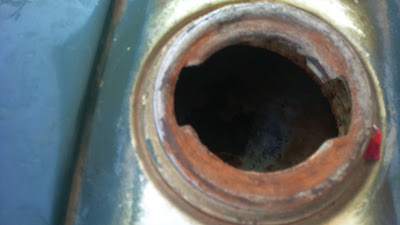 the old tank sealer can be easily removed by paint remover with methylene chloride